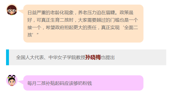 网友们对二孩生育补贴提案的看法:拍手叫好