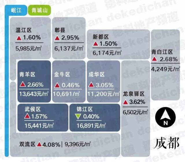 以下图表均为各城新建商品住宅均价(百分比数值为环比涨跌幅)——