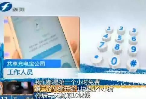 共享充电宝公司工作人员介绍,针对一般的购物商场这类公开区域,使用的第一个小时免费,第二个小时开始计费,1块钱1个小时,一天封顶10元钱。