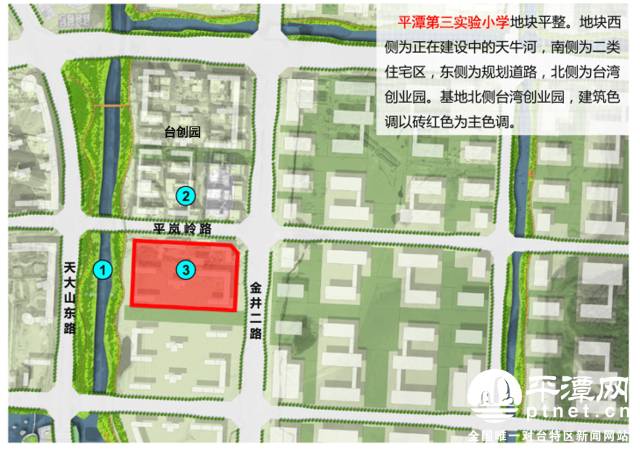 第三实验小学坐落在平岚岭路南侧、金井二路西侧、天大山东路东侧、天大北路北侧,紧邻台湾创业园。