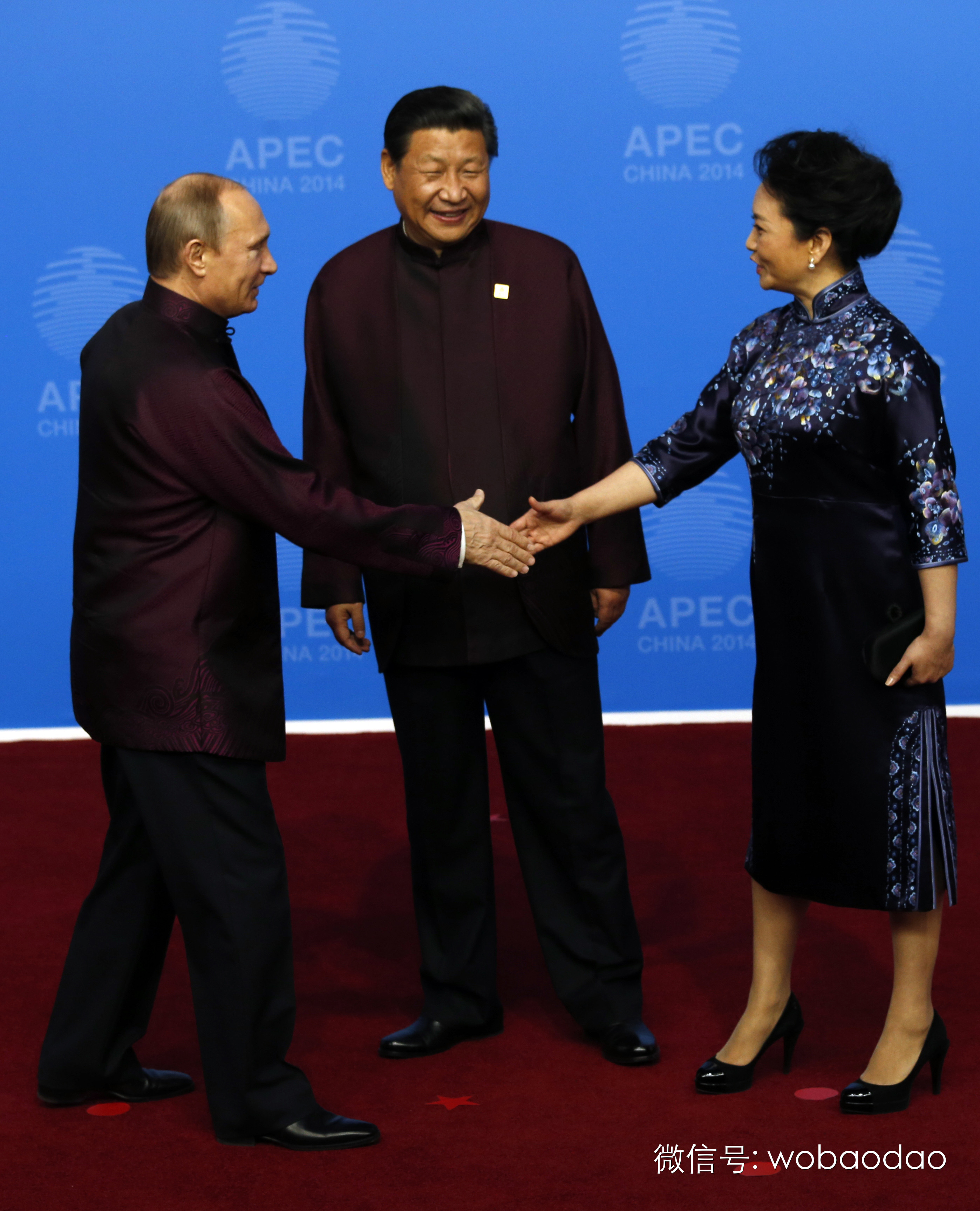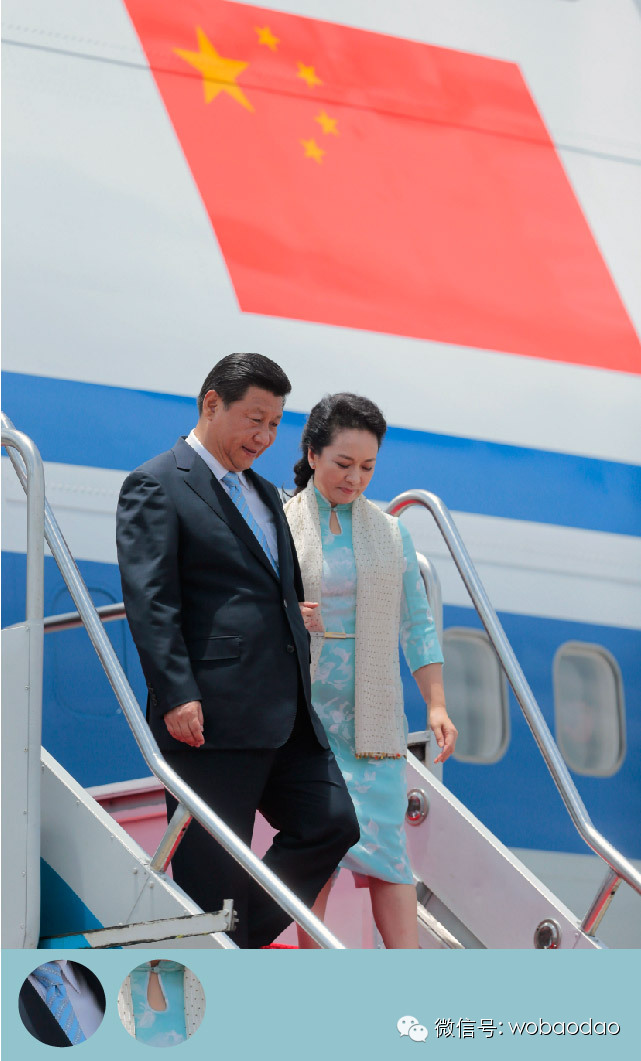 许多次,夫妇两人都是这样一组搭配出现:习大大改良式中山装,彭麻麻中式裙装。在一些非常正式的场合,这种着装既体现了对主人的尊敬,又凸显出本国特色,既礼貌周全,又别有创意。