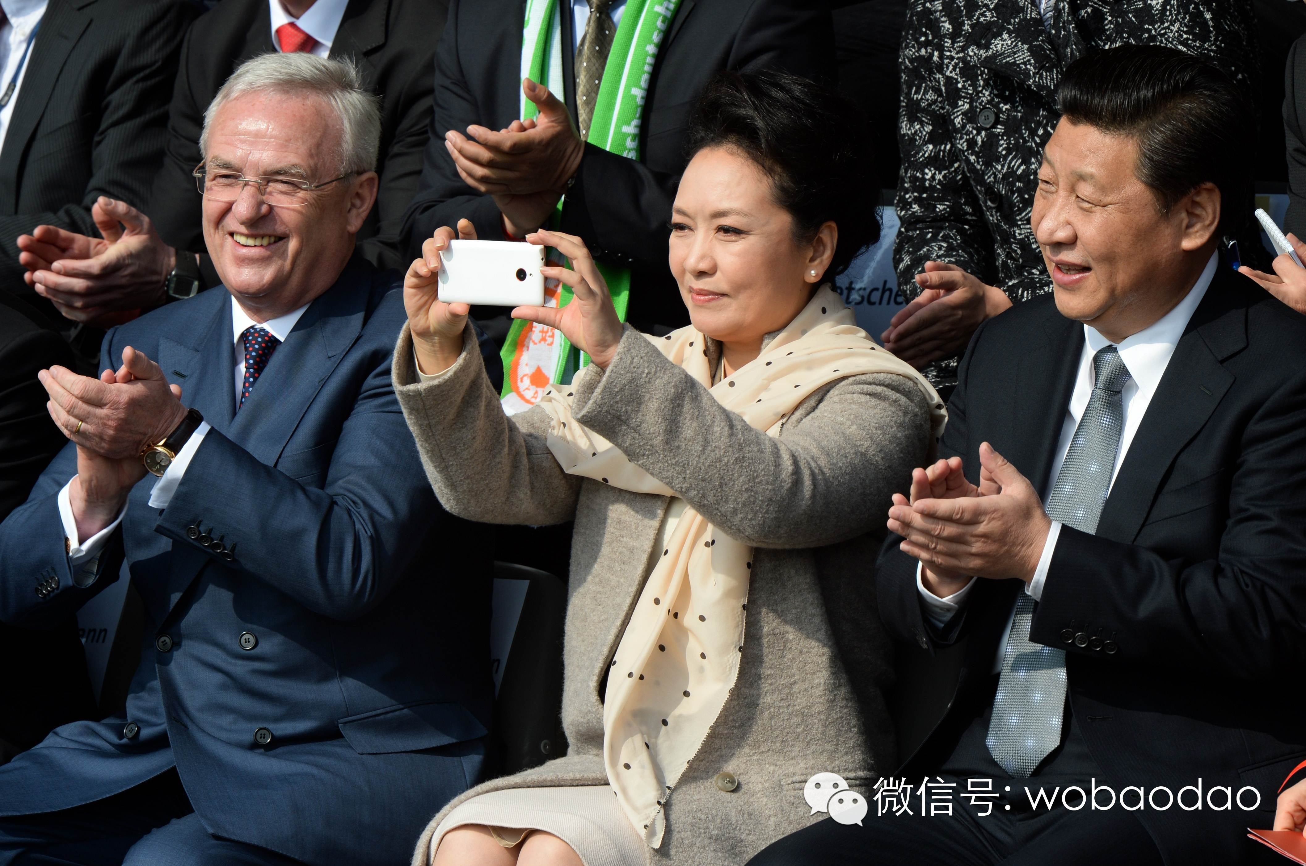 在观看中国少年足球运动员和沃尔夫斯堡足球俱乐部少年队员的友谊比赛时,大大的开心溢于言表,彭麻麻则拍照留念。这些小球员都是来自贫困革命老区陕西省志丹县的孩子们。大大对他们说:“我希望将来你们能够成为出色的足球运动员。”