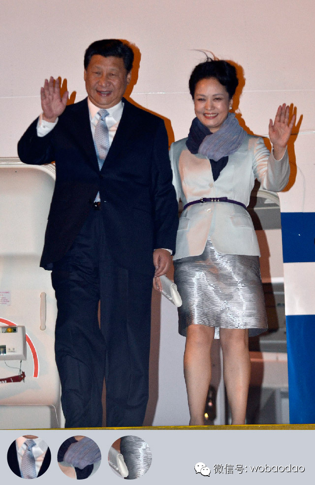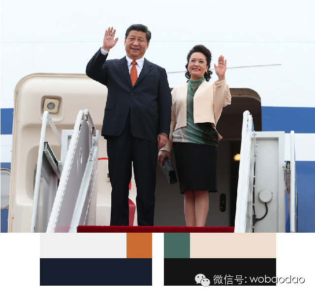 互补色,这也是服饰搭配的技巧之一。有时候,习大大的领带也会与彭麻麻的裙子用互补色,增强对比,却又相辅相成,带来一种强烈的观感。