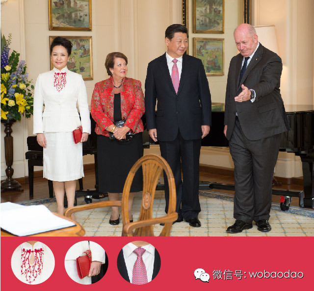 11月14日,抵达布里斯班,出席二十国集团领导人第九次峰会,并对澳大利亚进行国事访问。习大大的领带与彭麻麻的围巾、短裙都是一个色系的。