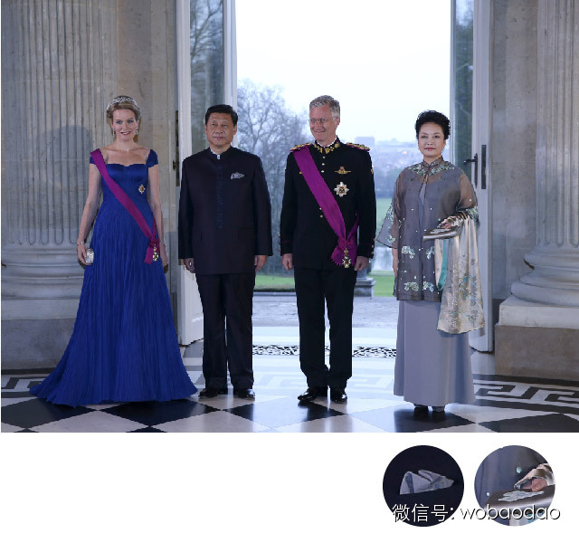 3月31日晚,比利时国王菲利普在布鲁塞尔拉肯宫举行隆重国宴欢迎习大大一行到访。再次出现中山装与中式长裙搭配。高级情侣装的穿法就是亮点在细节。看,习大大的口袋方巾与彭麻麻的长裙都是雪青色哦。