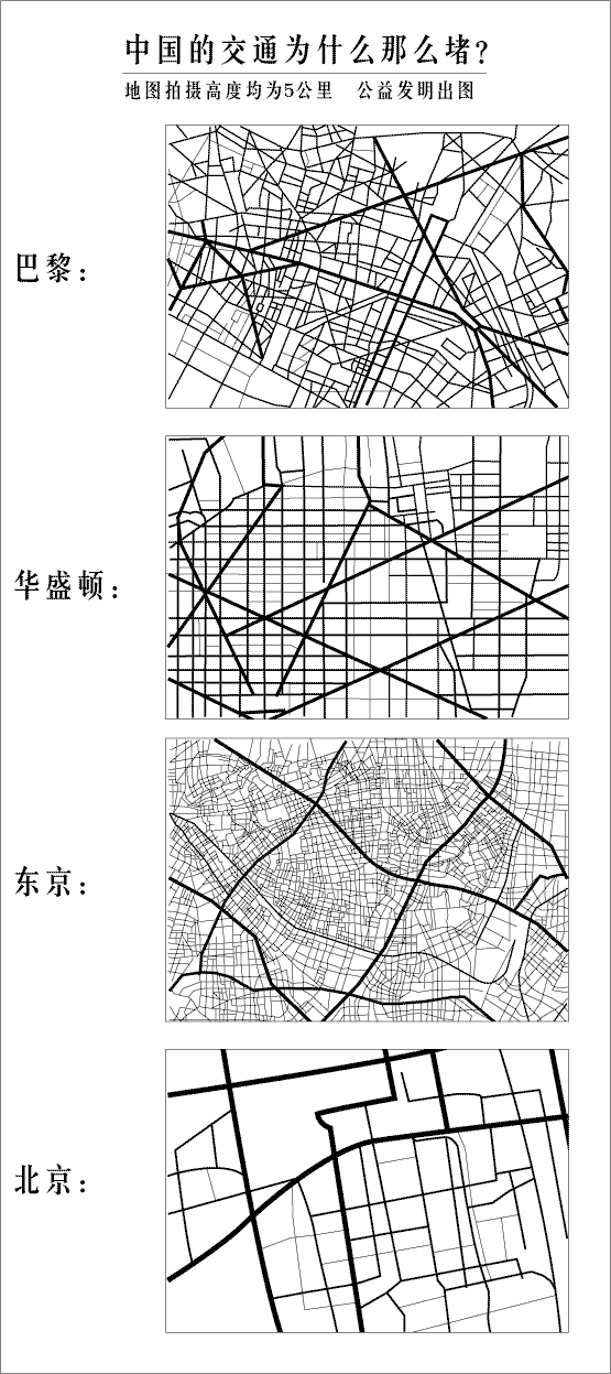 所以,以往那种以围墙来标识社区的城市组成模式导致的道路少,正是我们交通状况难以改善的主要原因之一。