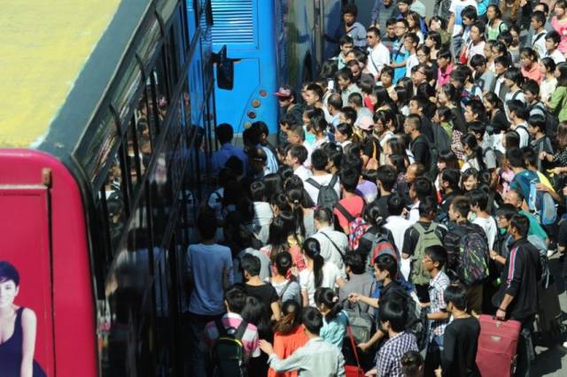 上班族:先是挤不进去,好不容易挤进去了到站准备下车时又被挤上去了。迟到了……