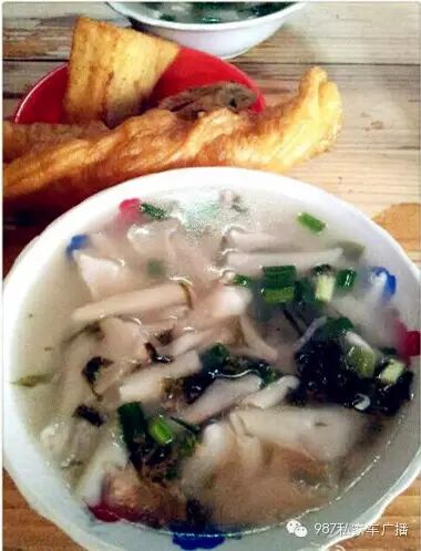 发现这家完全是偶遇,在肃威路侧墙上看到"锅边"指示牌,发现躲在印象咖啡一侧巷子中,无名无牌,只做早市,锅边2元/炒粉、粉干3元/油饼0.5元/三角糕1元/油条1.5元,全部都是店中现做,老板对米的要求很高,都是托亲戚从闽侯乡下买来适合的大米磨制米浆;而一个盛满熬制的蚬子底汤的大桶,绝对可以看出他们的用心程度。