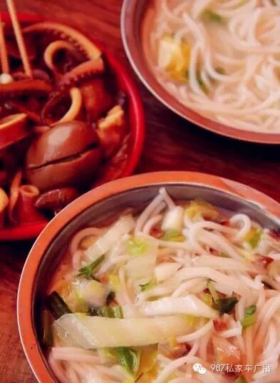 福州传统的粉干是“熟鱼煮粉干”,当然咸鱼最爱的是加入猪油渣,以前家中的猪油绝对是自己熬制的,熬完剩下的猪油渣炒香,加入香葱、中芹菜、熟鱼干,一碗香喷喷的粉干就出锅了,倘若是冬季,必定是往碗里加些白胡椒粉,驱寒的效果非常明显。