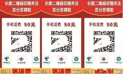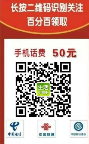 李同学收到了同学发给他的一张图片,图片上面写的扫描二维码关注就可以免费100%领取50元手机话费。李同学按照上面说的扫描并关注了一个名字叫“聚划算”的微信,要求李同学把这张图群发给他的好友并且截图发给“聚划算”微信。李同学按照要求群发了图片,也提供了手机号码,本以为可以领话费了,可是说要7天内发放。
